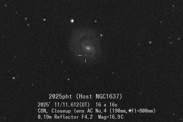超新星:2025adjeが15等。2025pht、2025aedz、2025aecvが16等。