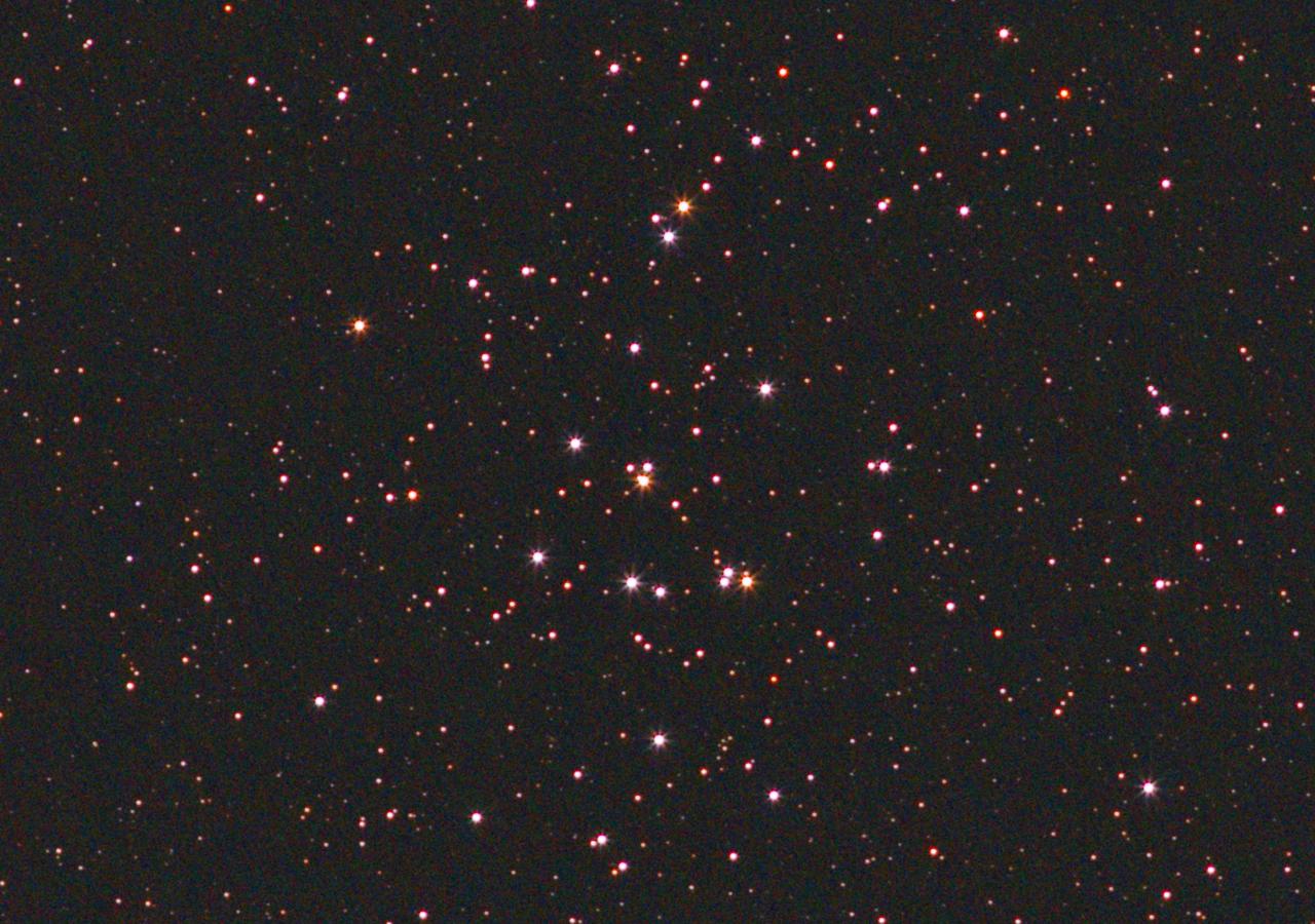 ・105mm(シグマ、105mm F2.8 MACRO) かに座の甲羅の部分が、このM44です。 このレンズは、青の色収差が出るので、青い星が強調されます。 105mmでは、M67も一緒に写せます。 データ:露出3分×3、EOSKissDigital(IRカットフィルタ除去)+HEUIBフィルタ、1/2縮小 ・200mm(キヤノン、EF200mm F2.8L II USM) 200mmとEOSKissDX4を使えば、M44の周りの小さな銀河も写ります。 データ:露出30秒×32、EOSKissDX4(スターショップ新改造)、等倍 ・300mm(シグマ、APO TELE MACRO 300mm F4) 天の川から離れた場所ですが、明るい星がたくさん写ります。 LPS-P2フィルタの影響なのか、青い星の色がはっきりしません。 データ:露出8分×5、EOSKissDigitalX(IRカットフィルタ除去)+LPS-P2フィルタ、1/2縮小